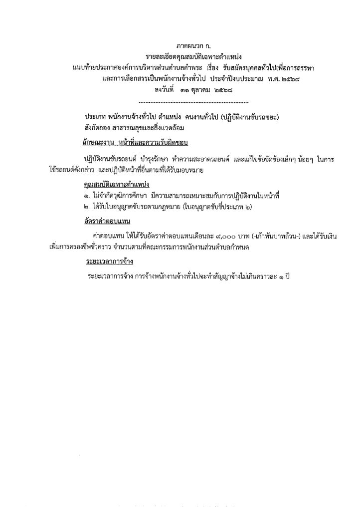 รับสมัคร ตำแหน่ง พนักงานจ้างทั่วไป ตำแหน่ง คนงานทั่วไป (ปฎิบัติงานขับรถขยะ) สังกัด กองสาธารณสุขฯ อบต.คำพระ
