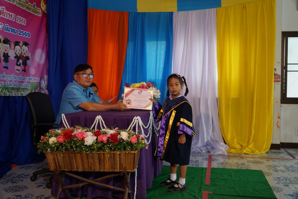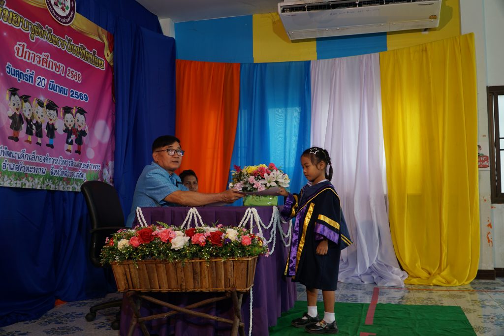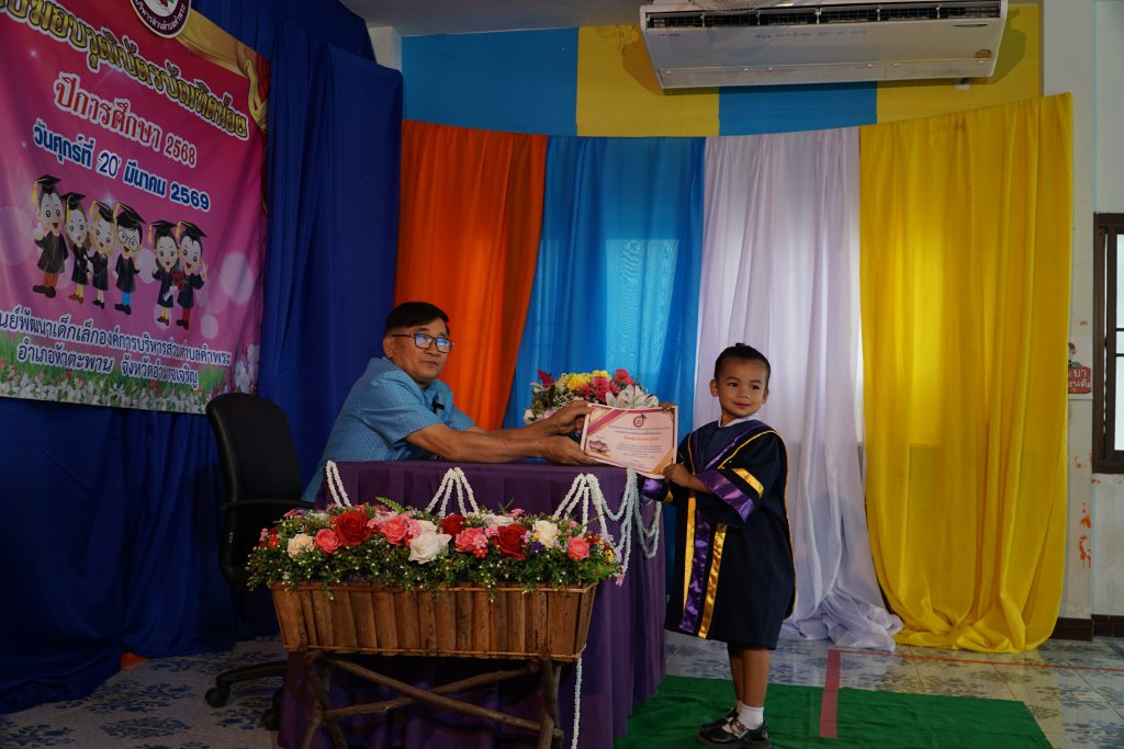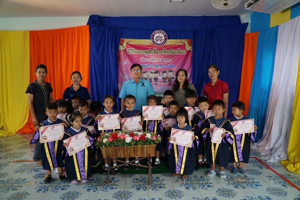 ได้จัดโครงการบัณฑิตน้อยประจำปีการศึกษา 2568 เพื่อมอบวุฒิบัตร และสร้างขวัญกำลังใจให้กับนักเรียนศูนย์พัฒนาเด็กองค์การบริหารส่วนตำบลคำพระ