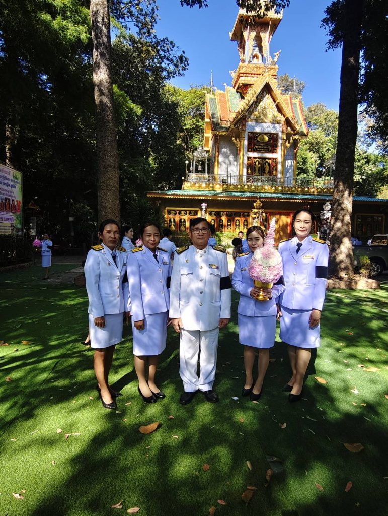 พร้อมด้วยคณะผู้บริหาร หัวหน้าส่วนราชการ พนักงานส่วนตำบล เข้าร่วมกิจกรรมทำบุญตักบาตรและวางพานพุ่มดอกไม้เพื่อถวายเป็นพระราชกุศลแด่สมเด็จพระเจ้าภคินีเธอ