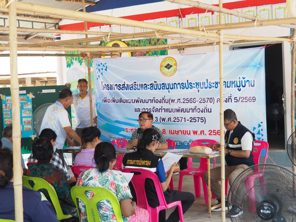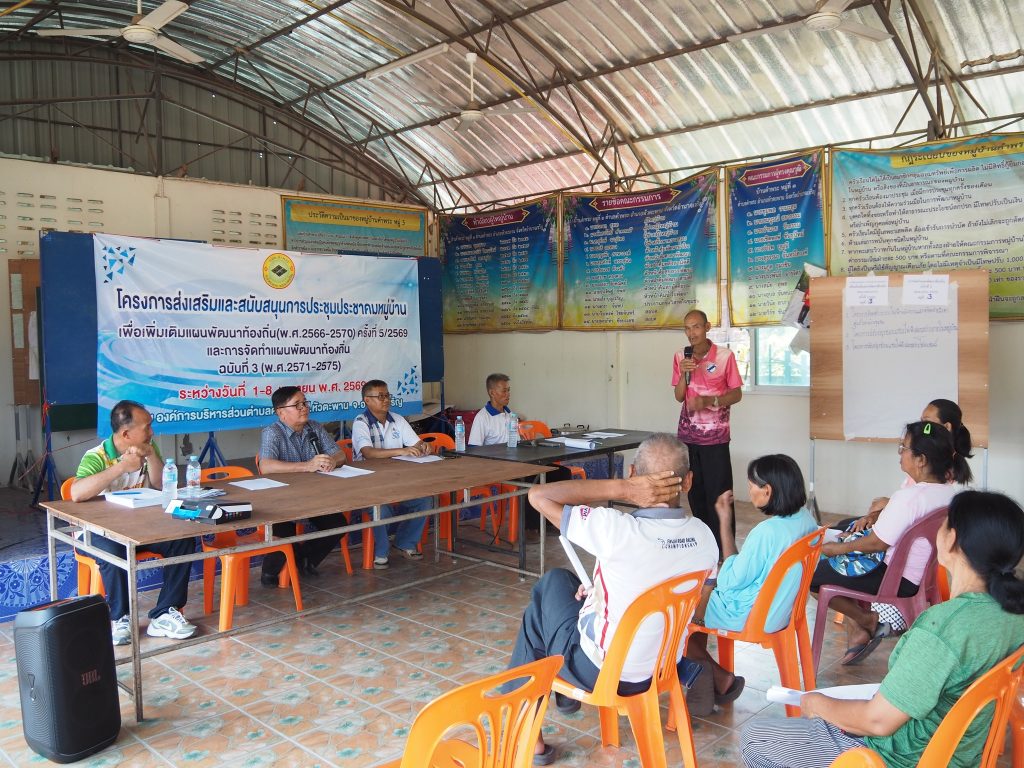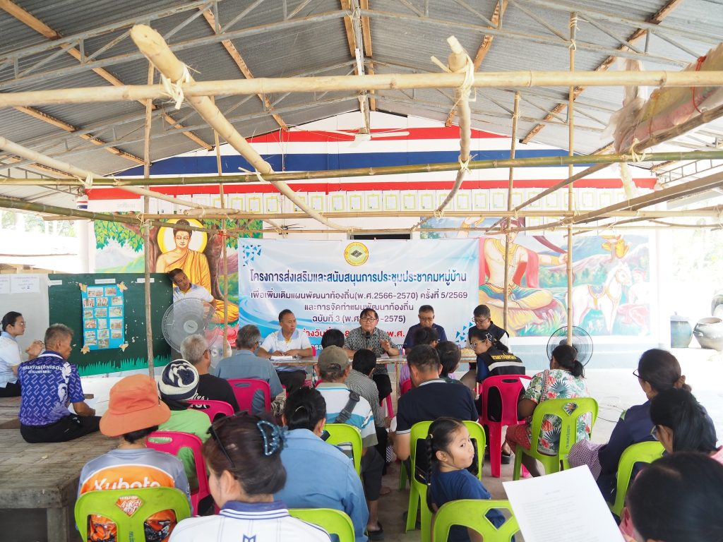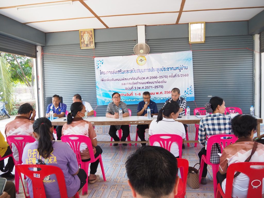 โครงการส่งเสริมและสนับสนุนการประชุมประชาคมหมู่บ้าน เพื่อร่วมกันแสดงความคิดเห็น เสนอปัญหา และความต้องการ สำหรับ:เพิ่มเติมแผนพัฒนาท้องถิ่น (พ.ศ. 2566-2570) ครั้งที่ 5 / จัดทำแผนพัฒนาท้องถิ่น (พ.ศ. 2571-2575) ฉบับที่ 3